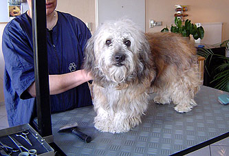 Geduldige und ruhige “Cindy” (Terrier-Mix) vorher... Cindy nach dem Trimmen